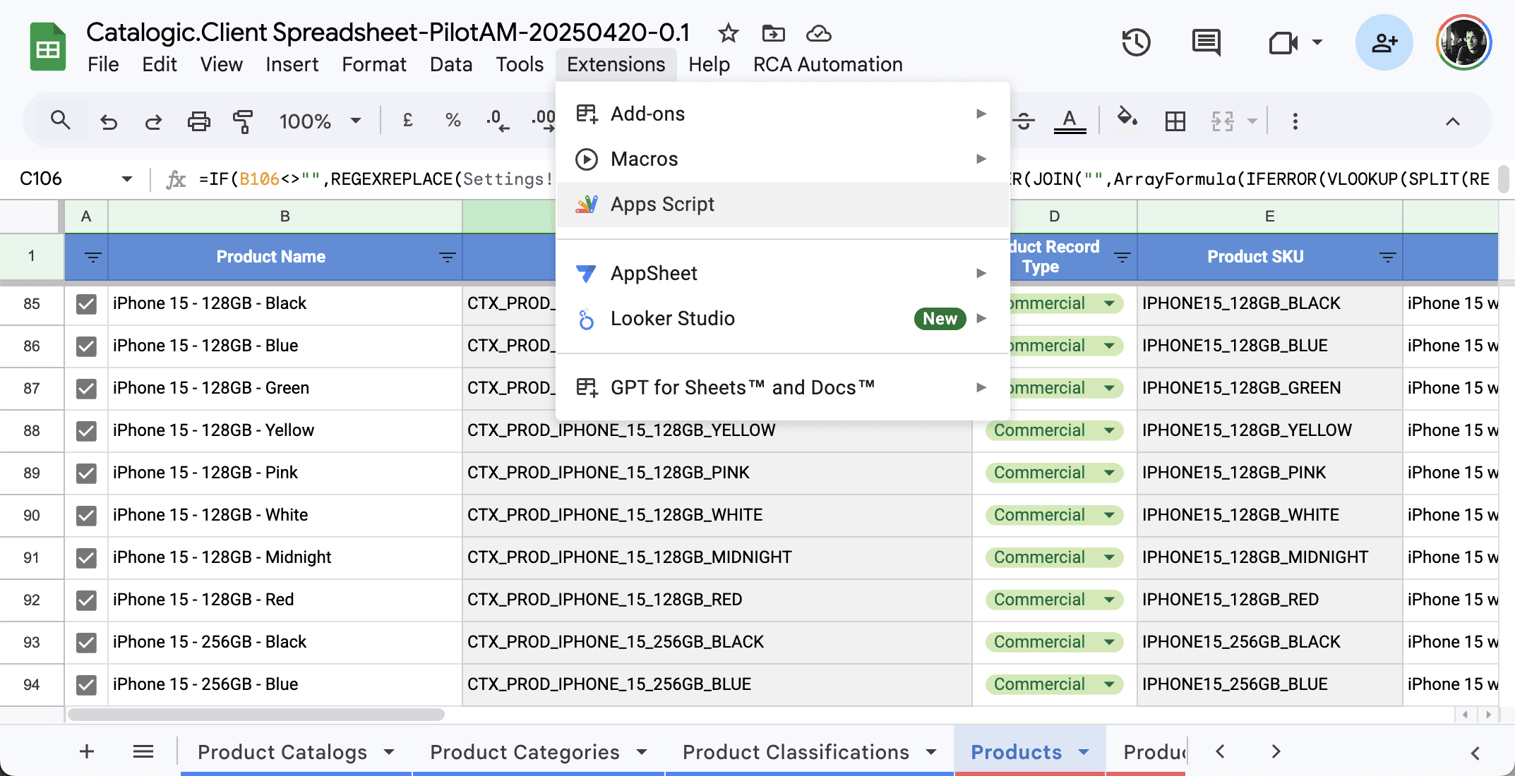4. Check Catalogic 🚀 menu item in your client spreadsheet
