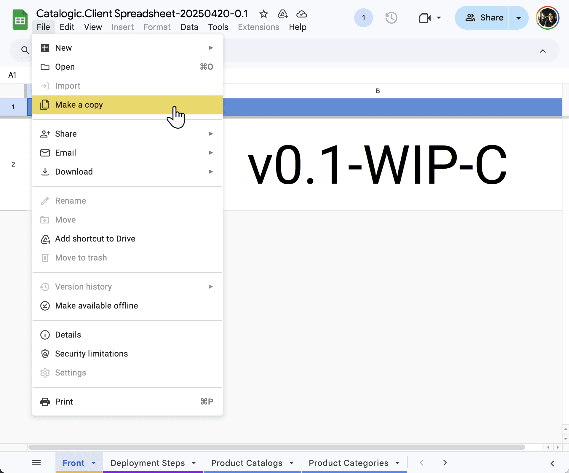 To begin working with Catalogic, you’ll need your own personal copy of the Catalogic spreadsheet. This copy will be based on our template and created under your Google account.