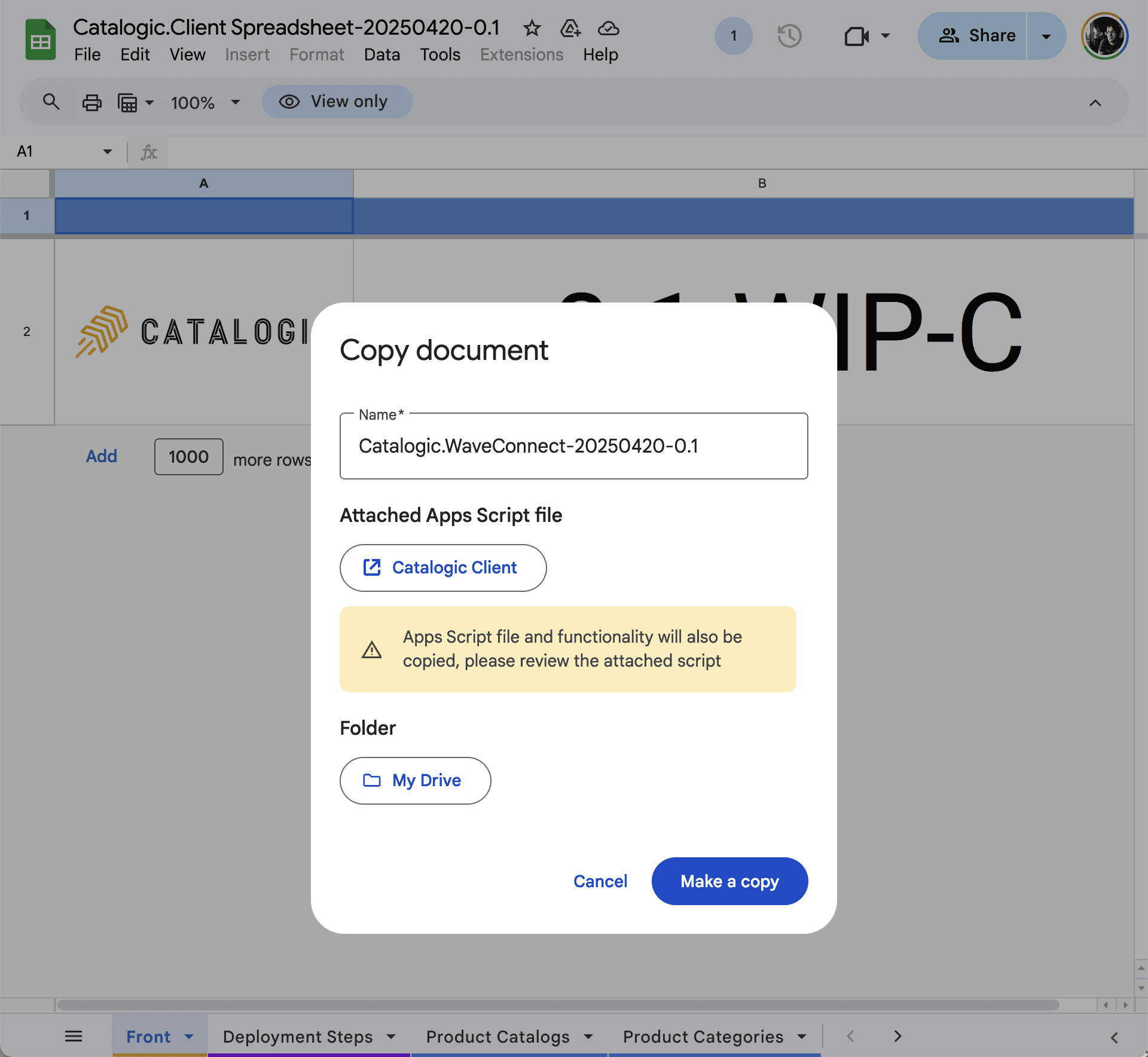 Creating your own copy of the Catalogic spreadsheet :google-sheets: