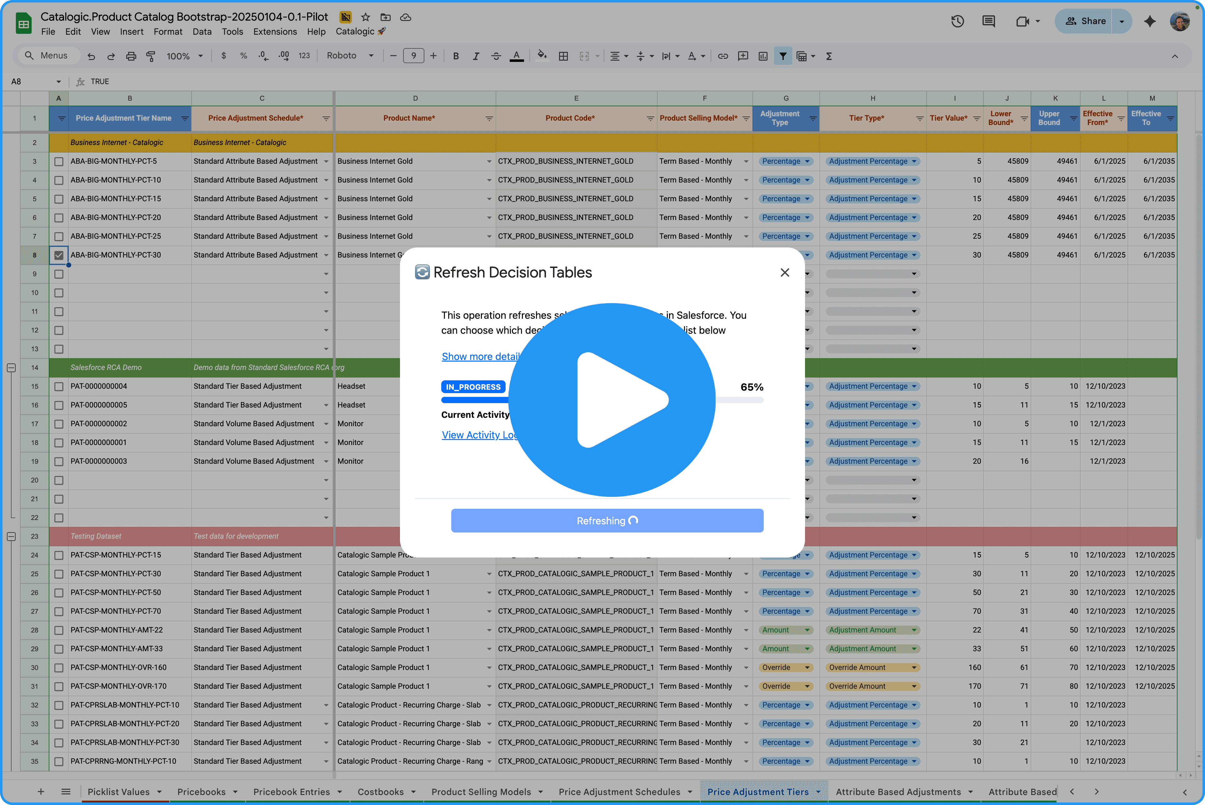 If you’ve ever configured pricing in Salesforce Revenue Cloud only to realize you forgot to refresh the decision tables – and then hit the dreaded refresh request limit – this one’s for you 🫰 With this new feature, you can refresh individual decision tables directly from Catalogic – no jumping between tools, less rework, no (or at least less) rate limit frustration.